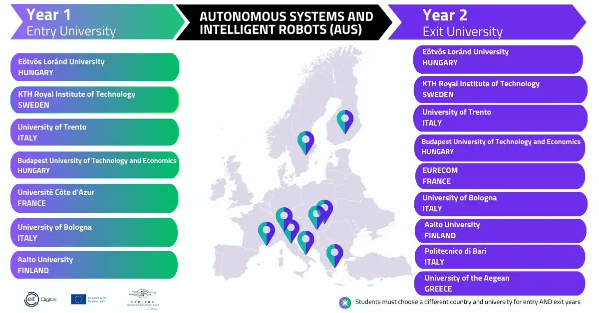 SPECTRO (SPecialised Education programmes in CybersecuriTy and RObotics) delivers two double-degree master’s programmes in cybersecurity and robotics across a consortium of 12 European universities. Funded by the EU Digital Europe Programme, this initiative addresses the growing demand for specialised expertise in critical digital technologies. The University of the Aegean participates as an Exit University in the Autonomous Systems and Intelligent Robots programme, where students complete their second year focusing on maritime robotics, autonomous navigation, and cooperative multi-vehicle systems. The curriculum combines advanced technical coursework with innovation, entrepreneurship, and industry-connected thesis projects. Scholarships are available, and the programme is coordinated by EIT Digital.